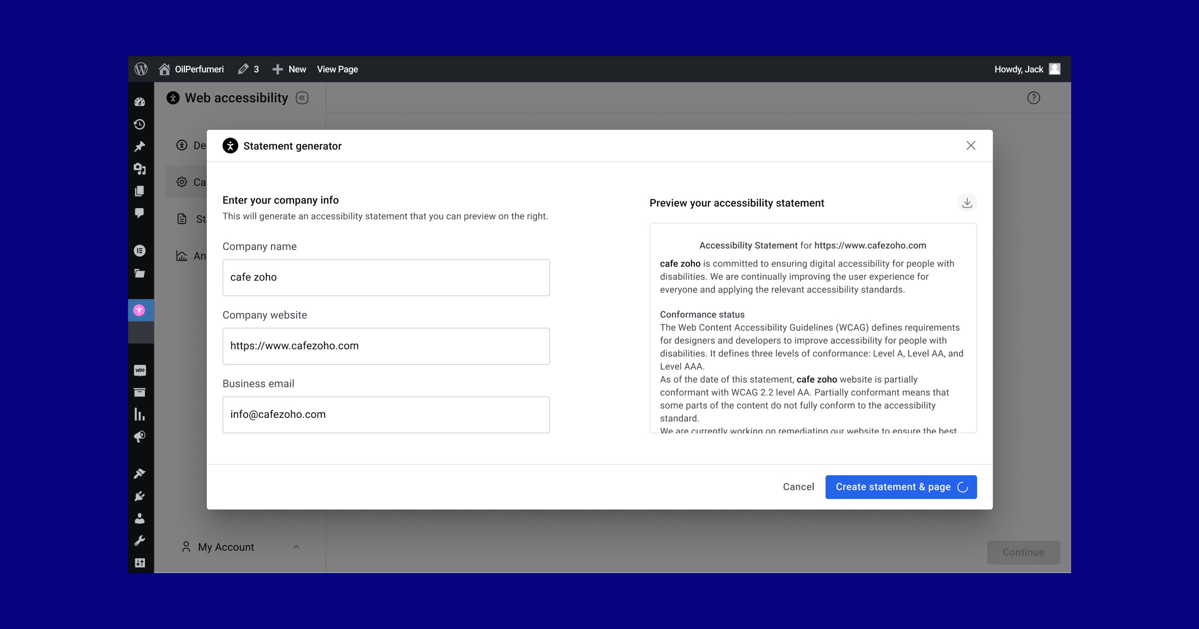 Accessibility Statement generator: Automatically generate a detailed accessibility statement aligned with global standards like WCAG and ADA. Publish it directly as a WordPress page to demonstrate your commitment to inclusivity.