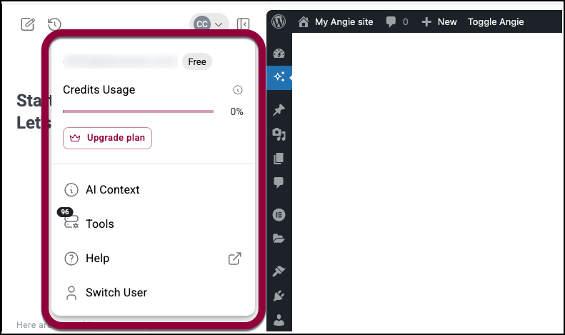 Your account information includes the type of plan you have and your credit usage. You can also upgrade your plan from the Account window.