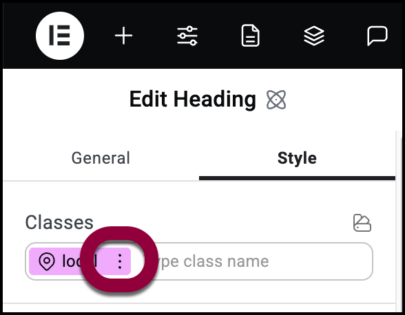 At the top of the Style tab, you’ll see the Class field with the class local already filled in. You can now add new classes to the element by following this process: