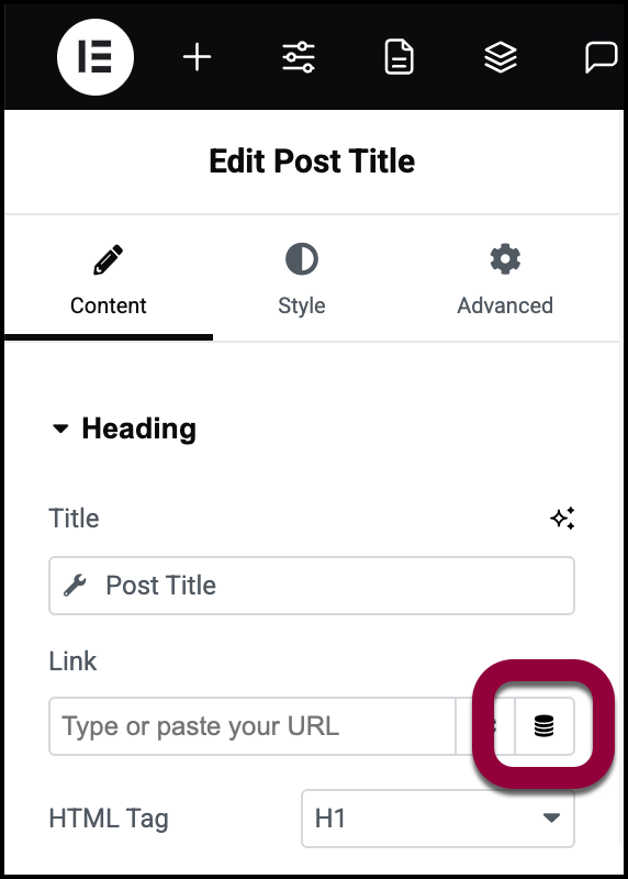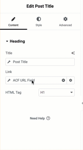 - Select a widget that makes use of dynamic content. In this case, we’ll select the Post Title widget.