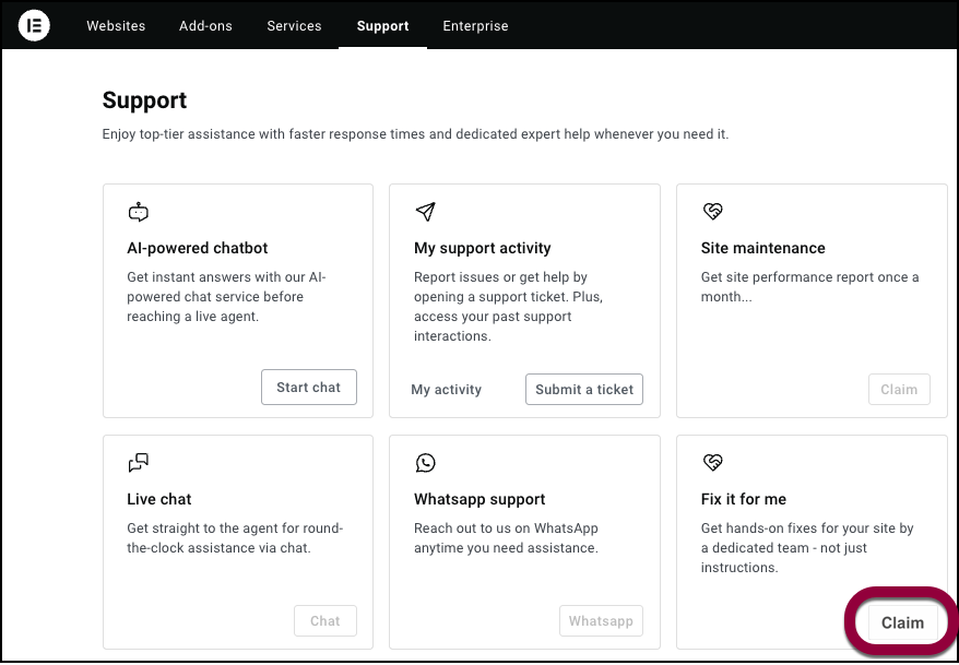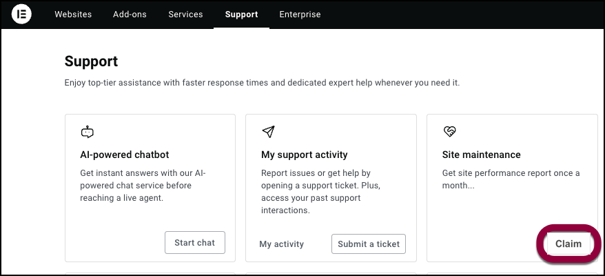 - (For qualified subscriptions only) Click Claim for personalized service from our support team.
