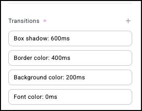 By default all properties transition simultaneously at 200 milliseconds (MS). All users can adjust the transition time, Pro users can adjust the transition times for individual properties.