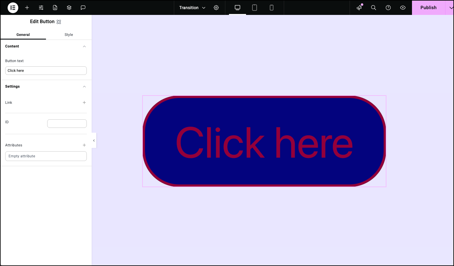 You are now setting how the element will look when visitors hover over it. - In this example, we’ll have the colors change and add a box shadow when users hover over it. For details, see the articles on Style tab – Typography, Style tab – Background, Style tab – Border and Style tab – Effects.