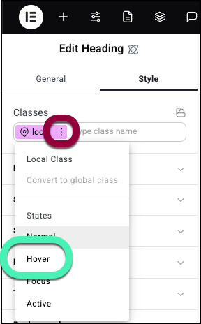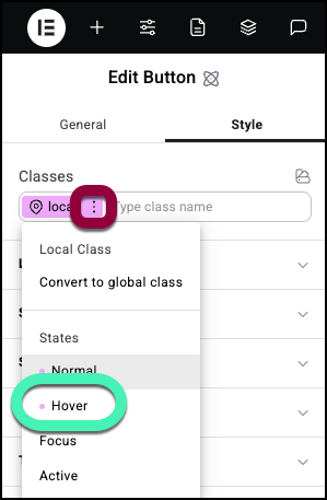 - In the Classes section, click the ellipses by the local class and select Hover.