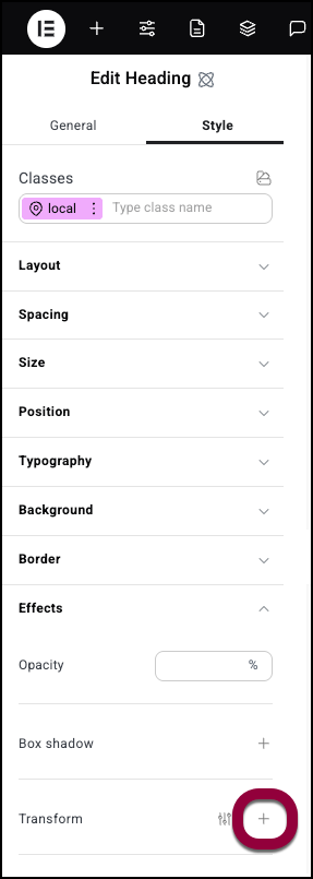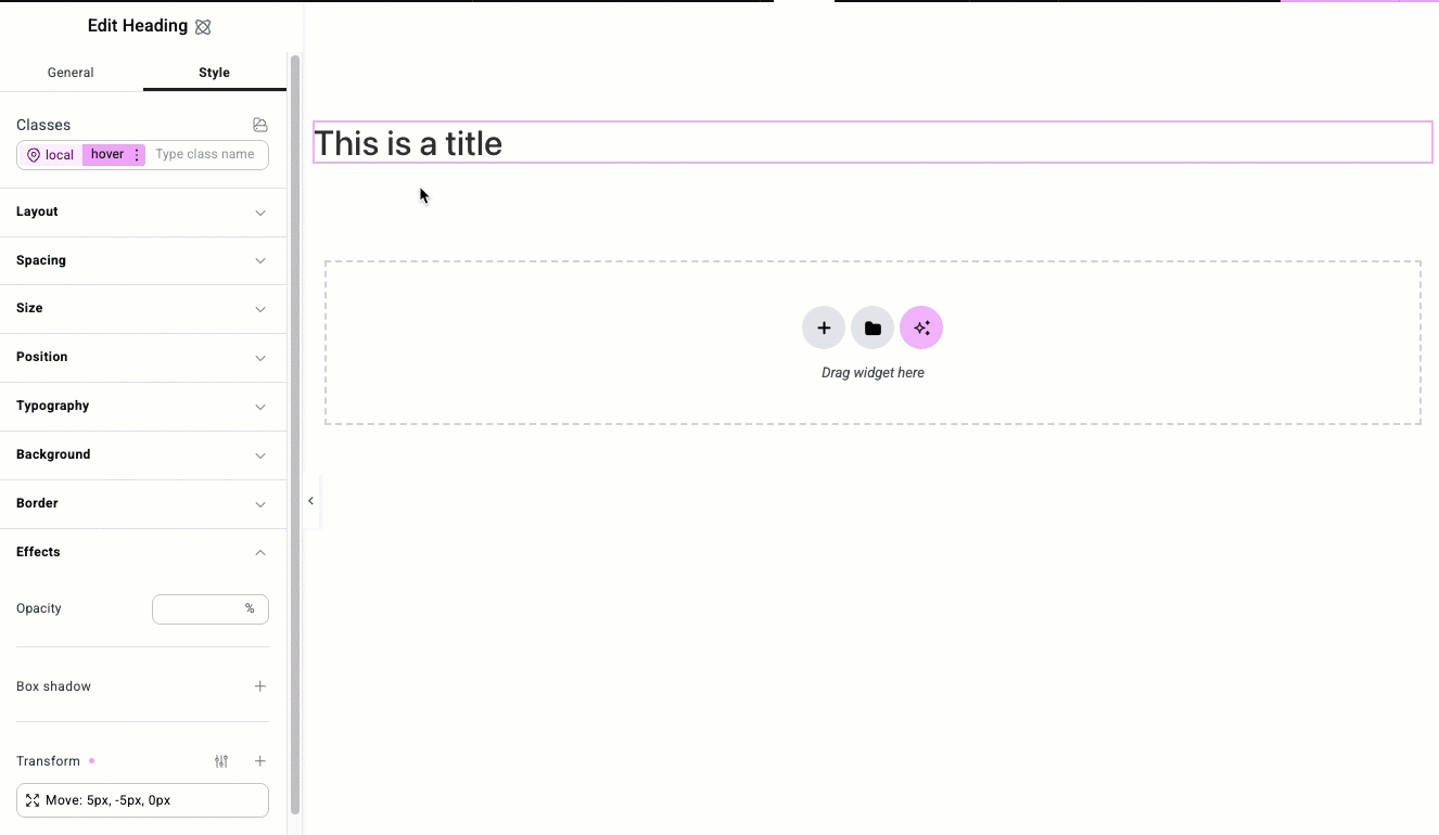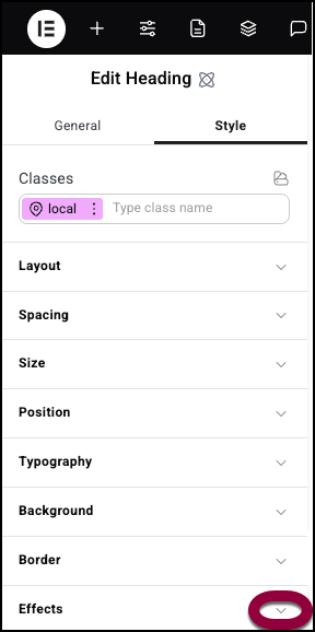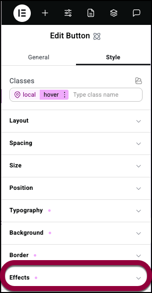 You are now setting how the element will look when visitors hover over it. - Open the Effects field.