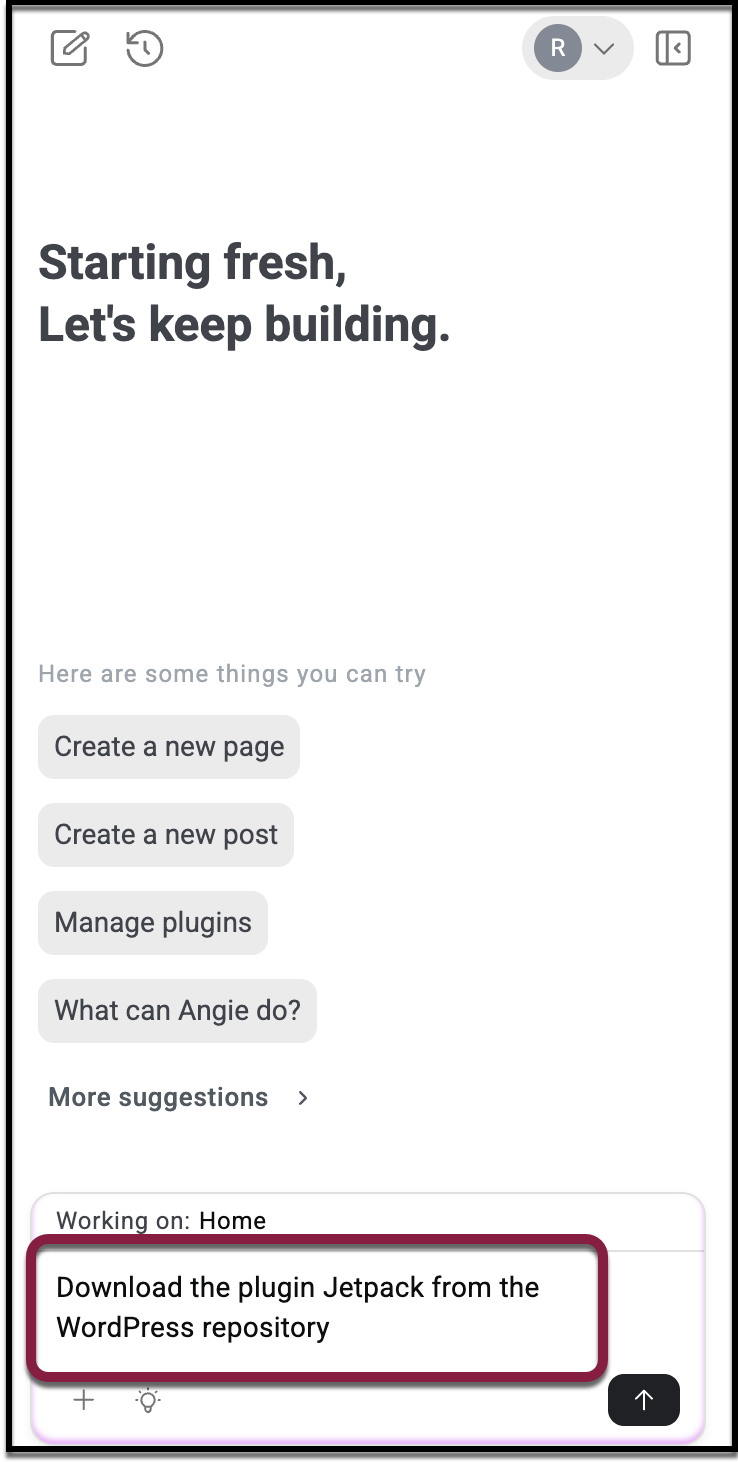 - In this case, we will prompt Angie to download the plugin Jetpack from the repository.NoteThere are thousands of plugins in the WordPress repository; it’s important to be as specific as possible.